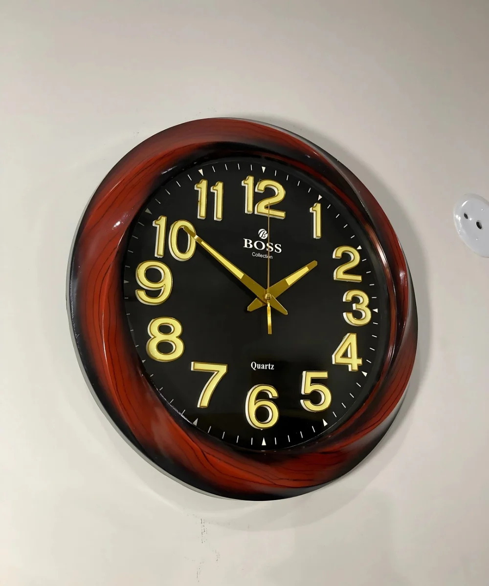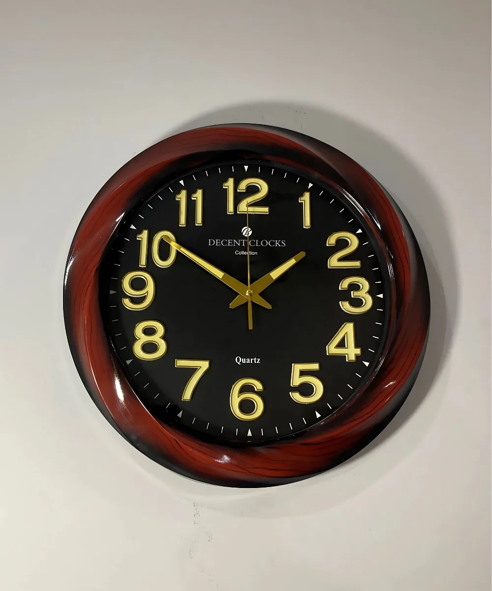 Elevate your decor with this elegant 14.5″ wall clock featuring golden numerals and a glowing dial for nighttime visibility 🌙 — backed by 3-year warranty and Free Delivery 🚚. Its Red colour with Black grains looks perfect with every wall.